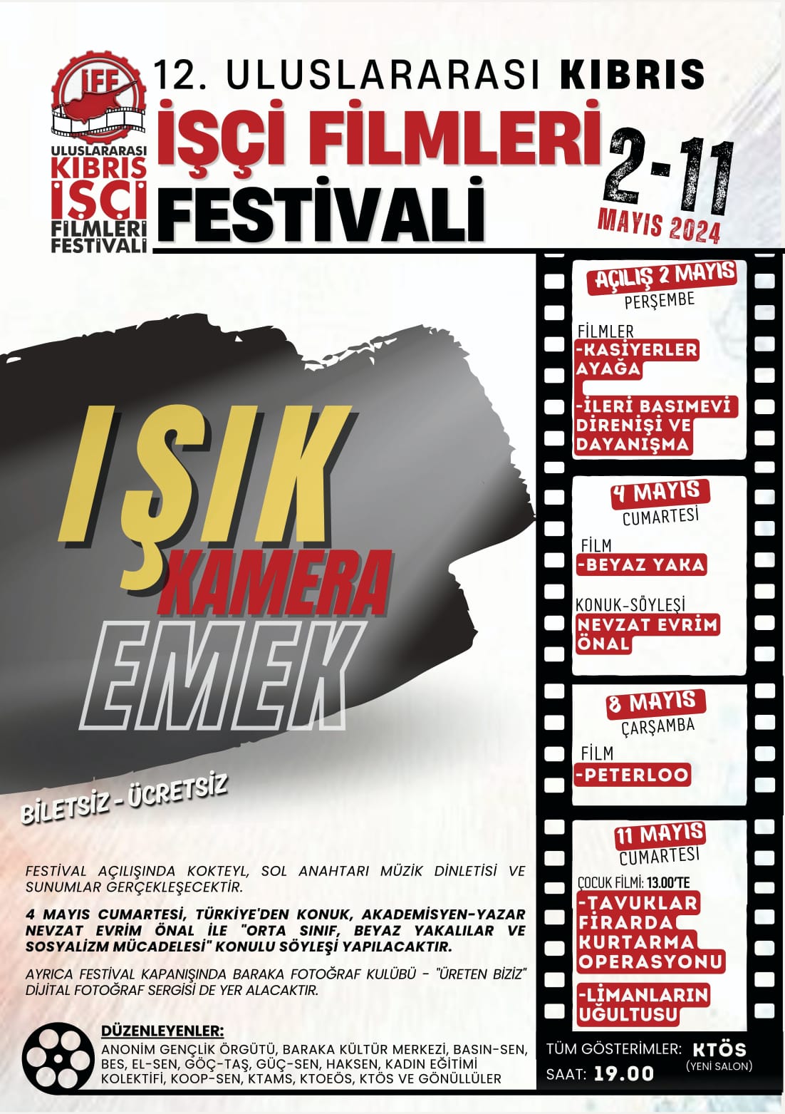 “5  Temmuz 1934, “Kanlı Perşembe” diye bilinen, liman işçilerinin grevini destekledikleri için iki kişinin öldürüldüğü günün anısına, 1994 yılında ABD’nin San Francisco kentinde ilk kez başlatılan İşçi Filmleri Festivali, o günden bu güne her yıl Dünya’nın dört bir yanında düzenlenmektedir.” denilen açıklamada, festival, Kuzey Kıbrıs’ta ise 2007 yılından beri Uluslararası Kıbrıs İşçi Filmleri Festivali adı ile organize edilmekte  olduğu kaydedildi.