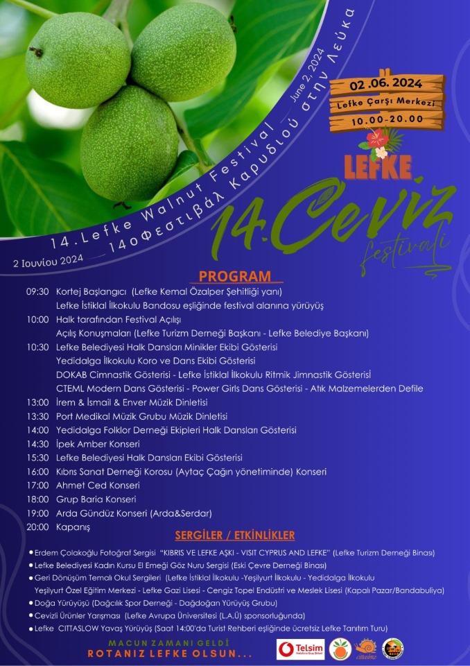 Lefke Belediyesi, Lefke Turizm Derneği iş birliğinde ve Telsim katkılarıyla düzenlenecek 14. Lefke Ceviz Festivali yarın yapılacak.