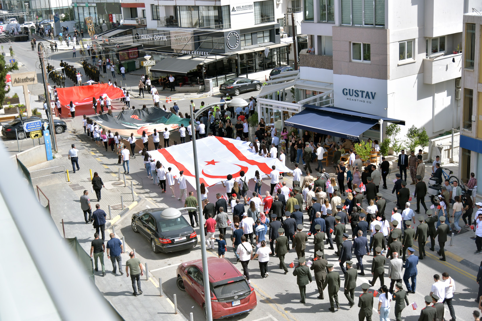 Bando eşliğindeki yürüyüşe, Cumhurbaşkanı Ersin Tatar, Cumhuriyet Meclisi Başkanı Zorlu Töre, Başbakan Ünal Üstel, Türkiye Cumhuriyeti (TC) Lefkoşa Büyükelçisi Metin Feyzioğlu, Kıbrıs Türk Barış Kuvvetleri Komutanı Tümgeneral Sebahattin Kılınç, Güvenlik Kuvvetleri Komutanı Tümgeneral Osman Aytaç, Başbakan Yardımcısı, Turizm, Kültür, Gençlik ve Çevre Bakanı Fikri Ataoğlu, Milli Eğitim Bakanı Nazım Çavuşoğlu, Lefkoşa merkez okullarından öğrenciler, öğretmenler, üniversiteler, askeri erkan, vatandaşlar ve diğer yetkililer katıldı.