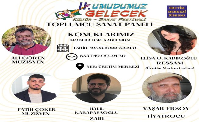 Üretim Sokağı Kültür Merkezi’nden verilen bilgiye göre, panelin konuşmacıları müzik eğitimcisi ve sanatçısı Ali Gören, resim sanatçısı ve Üretim Merkezi temsilcisi Elisa Kadiroğlu, müzik sanatçısı Fatih Çoker, şair ve yazar Halil Karapaşaoğlu ve tiyatrocu, yazar Yaşar Ersoy olacak.