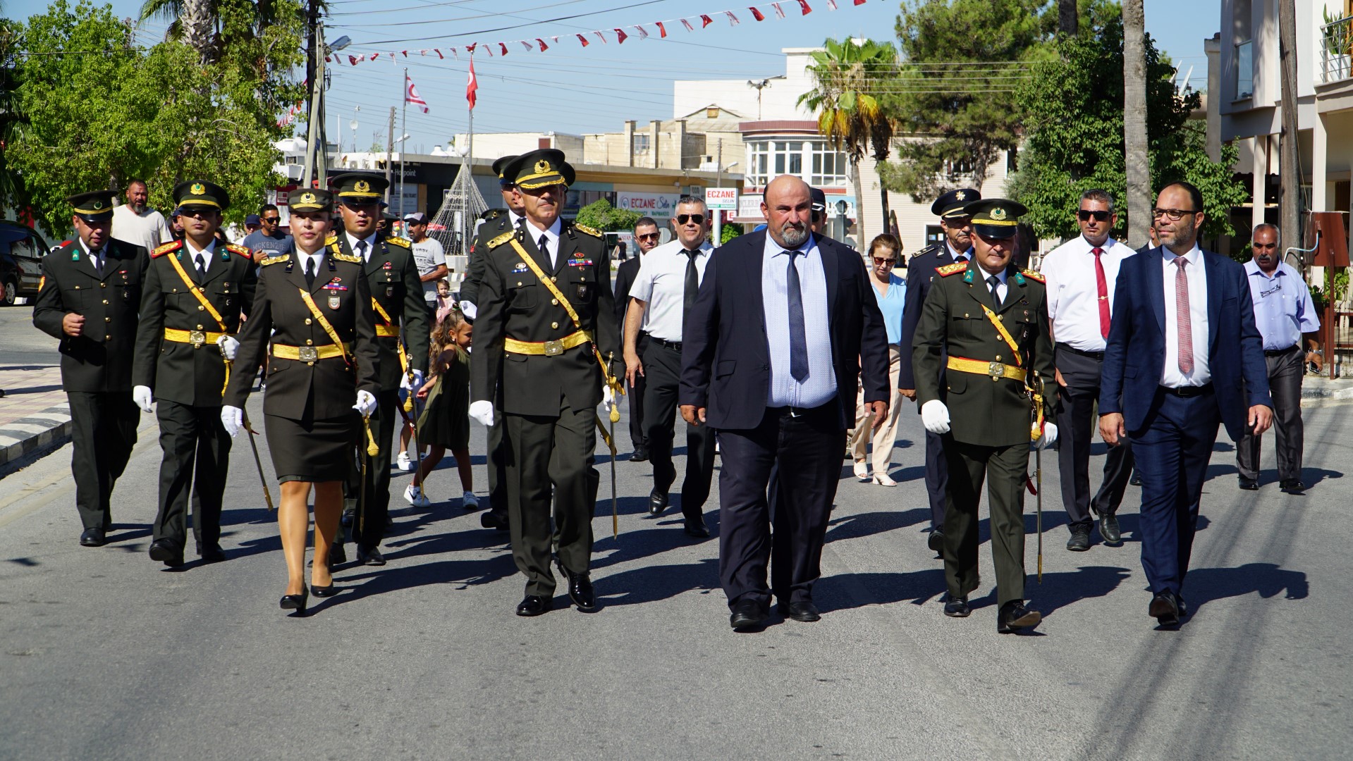 İskele Belediyesi’nden verilen bilgiye göre, İskele Atatürk Anıtı önünde başlayan tören İskele Ecevit Meydanı’nda devam etti.