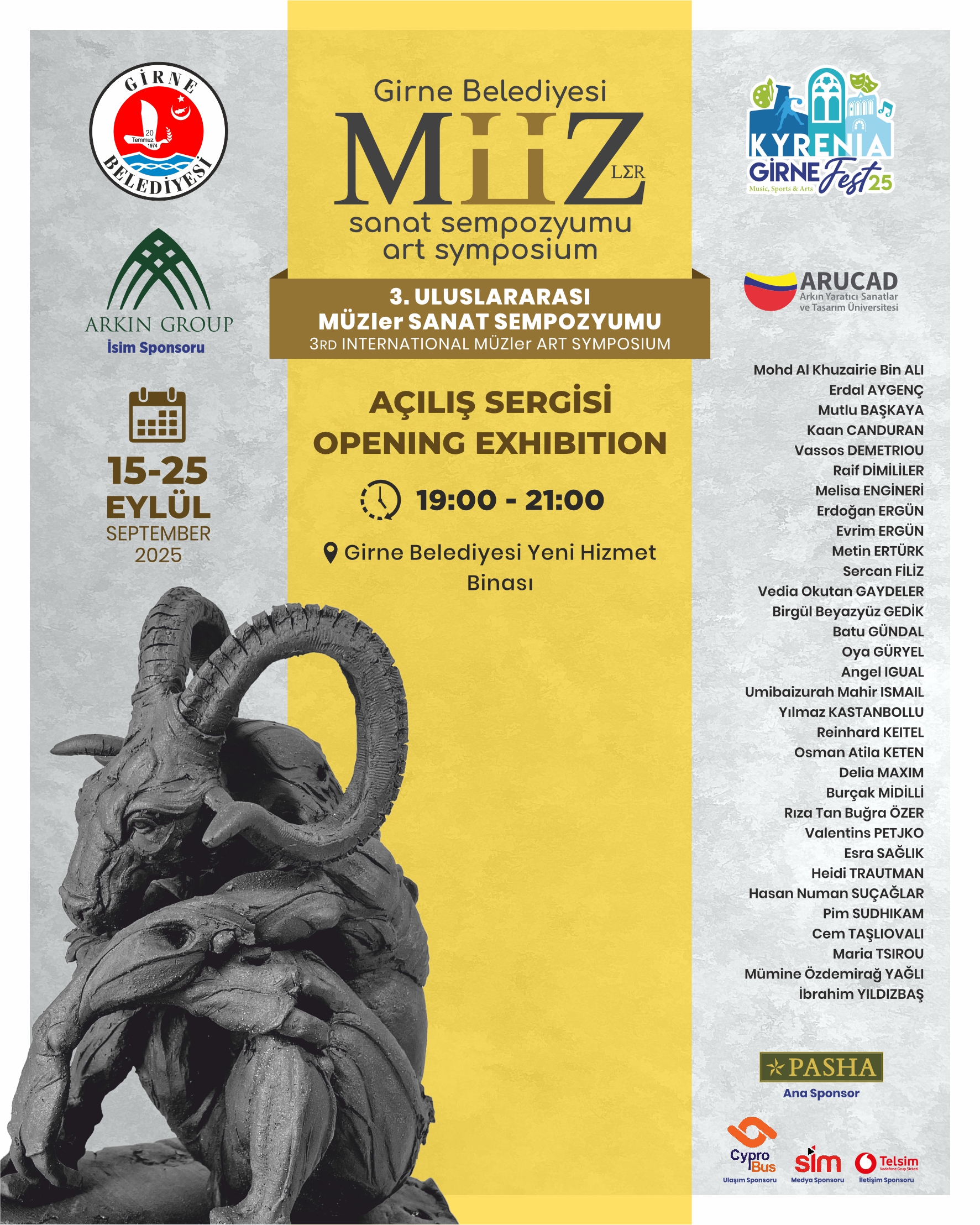 ‘Girne Arkın Group Fest25’ kapsamında bu yıl üçüncü kez düzenlenecek Uluslararası MÜZler Sanat Sempozyumu’nun açılış sergisi, bugün yapılacak.