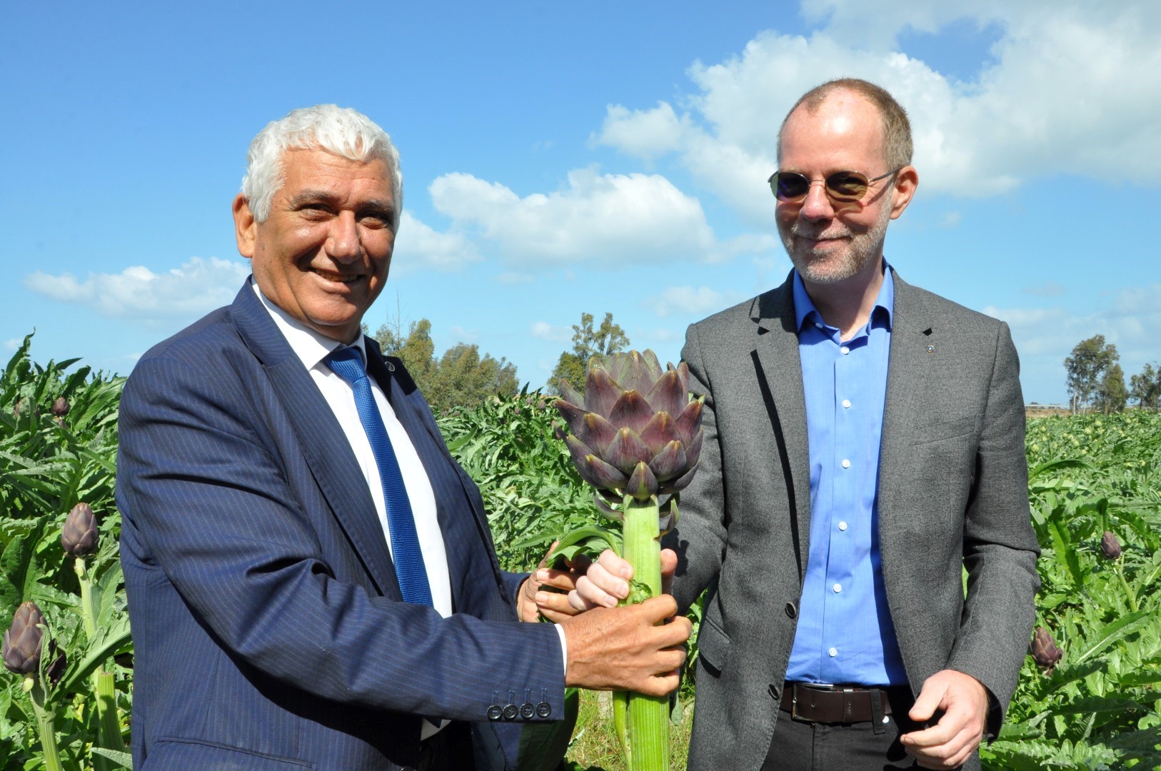 AB yetkilileri, arıtılmış atık suyun tarımsal amaçlı kullanım projesi dahilinde uygulamaya başlanan enginar üretimi pilot projesini de yerinde inceleyerek bilgi aldı.
