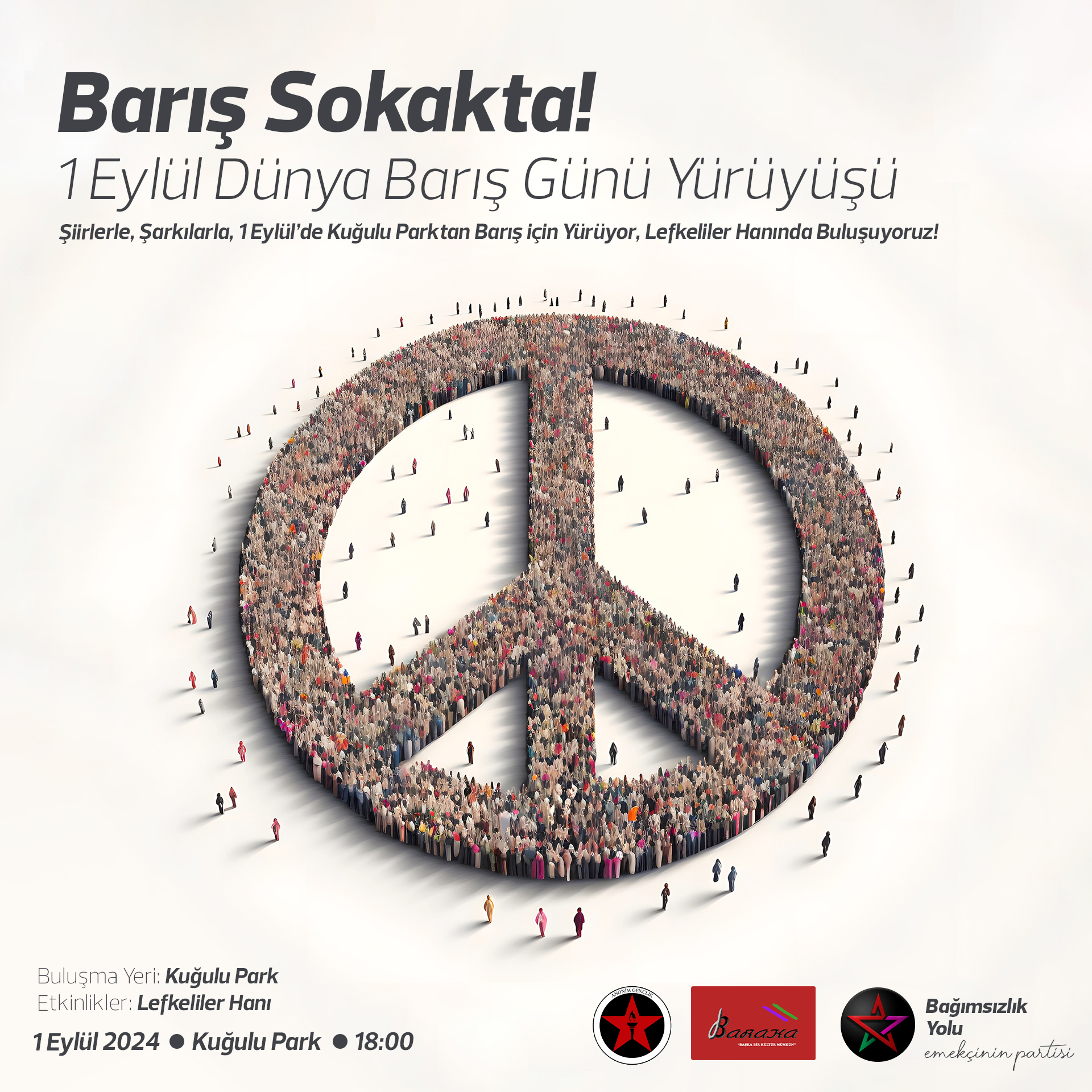 Anonim Gençlik, Bağımsızlık Yolu ve Baraka kültür Merkezi, 1 Eylül Dünya Barış Günü’nde Lefkeliler Hanı’nda ortak eylem düzenleyecek.