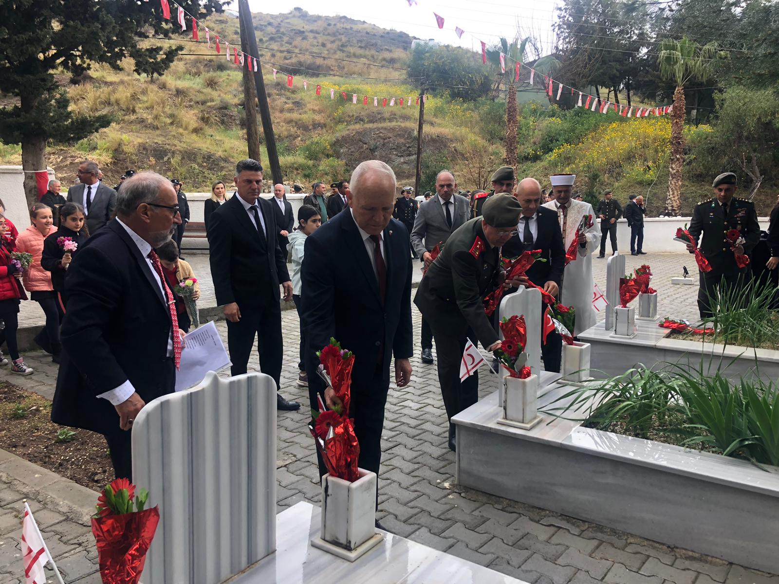 Tören, şehitler için dua okunması ve şehit kabirlerine çiçek bırakılmasıyla tamamlandı.