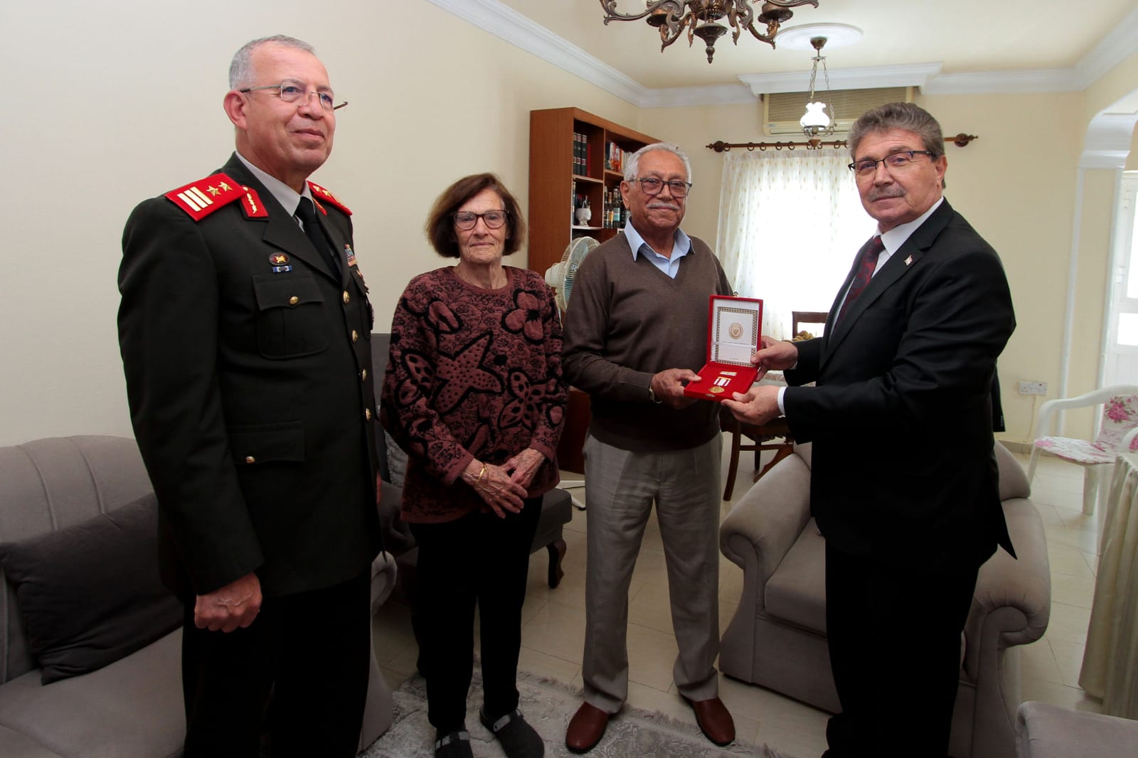Başbakan Ünal Üstel, 1 Ağustos 1976 öncesi mücahitlik görevini yapmış Hüseyin Konuralp ve Hülagü Kayter Aytaçoğlu’na mücahitlik yıllarında vatan savunmasına yaptığı katkılardan dolayı Mücahit Madalyası takdim etti.