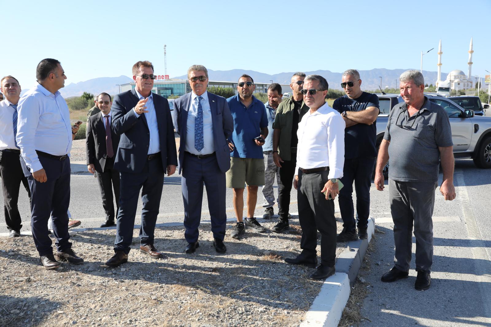 Başbakan Ünal Üstel, Bayındırlık ve Ulaştırma Bakanı Erhan Arıklı ile birlikte, Kurudere Kavşağı’nda incelemelerde bulundu.
