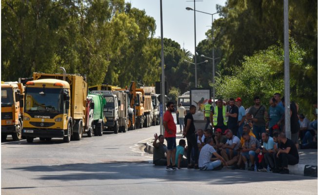 Belediyelerde örgütlü sendikalar Devrimci İşçi Sendikaları Federasyonu (DEV-İŞ), Belediye Emekçileri Sendikası (BES) ve Mağusa Türk Genel-İş, Meclis önünde eylem yapıyor.