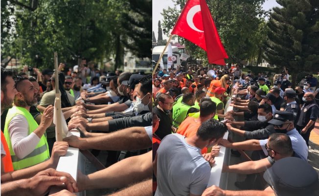 Belediye çalışanlarının Meclis bahçesi kapısını tekmeleyip, açmak için sallaması ve zorlaması üzerine polis müdahale etti.