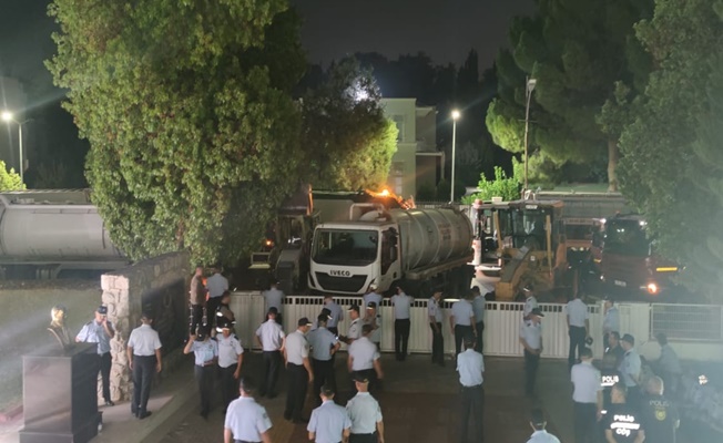Belediye çalışanları, Meclis İdari Kamu ve Sağlık İşleri Komitesi’nin Belediyelerin Birleştirilmesine İlişkin (Özel) Yasa Tasarısı’nı ele aldığı toplantı devam ederken  saat 20.30’da iş araçlarıyla Meclis önünde toplandı.