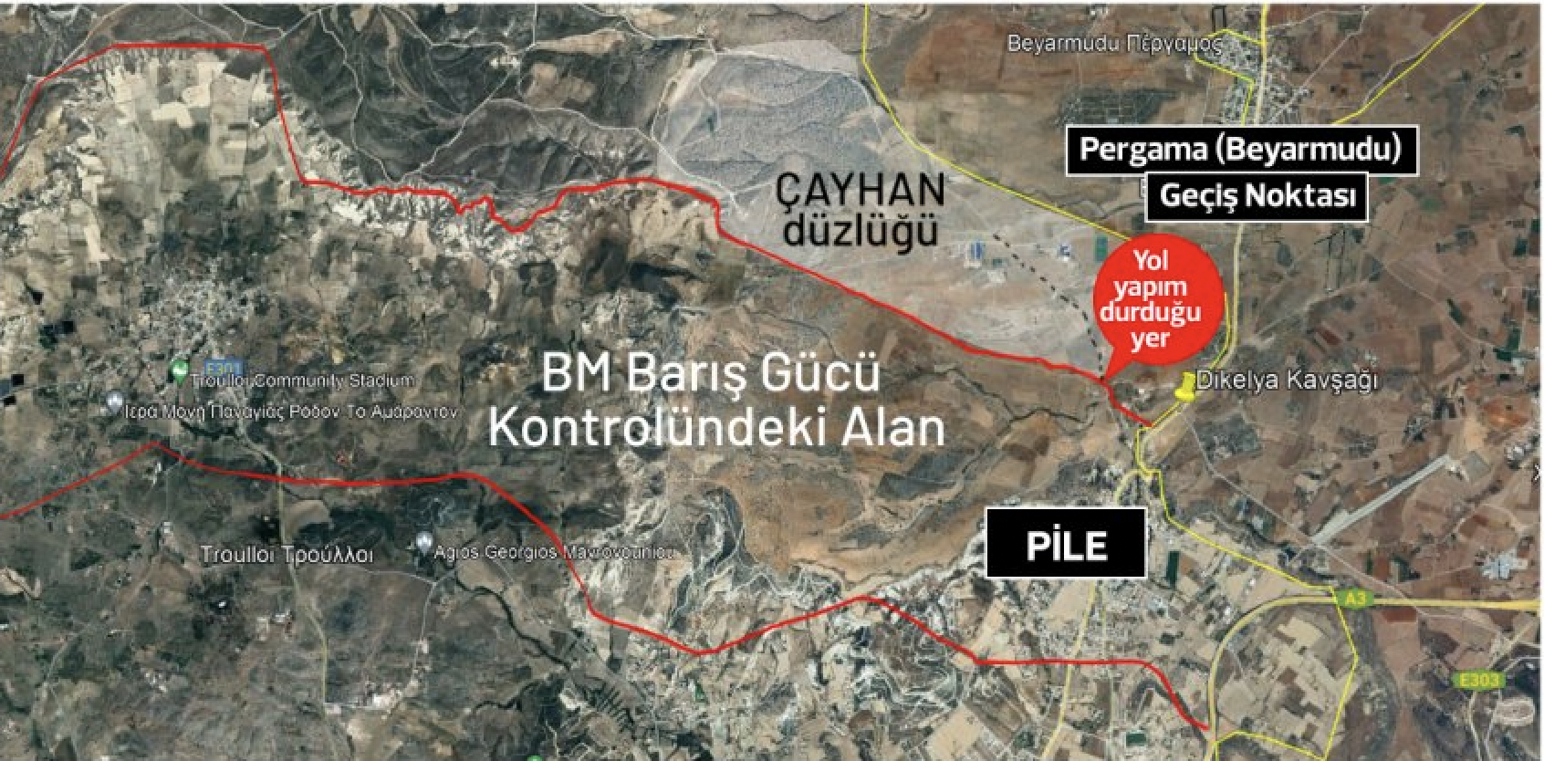 KKTC kulislerinden derlenen bilgilere göre, Birleşmiş Milletler, Pile bölgesinde tartışmalı olarak belirlediği ara bölge içindeki arazilerin kullanıma açılmasını, bölgede arazisi olan Türk ve Rumların bu arazilerini kullanabilmelerini, Türk tarafının tartışmasız olarak kontrolünde olan bölgenin girişinde bir “kontrol noktası” oluşturulmasını, Pile girişinde ise BM kontrol noktası olmasını önermiş bulunuyor.