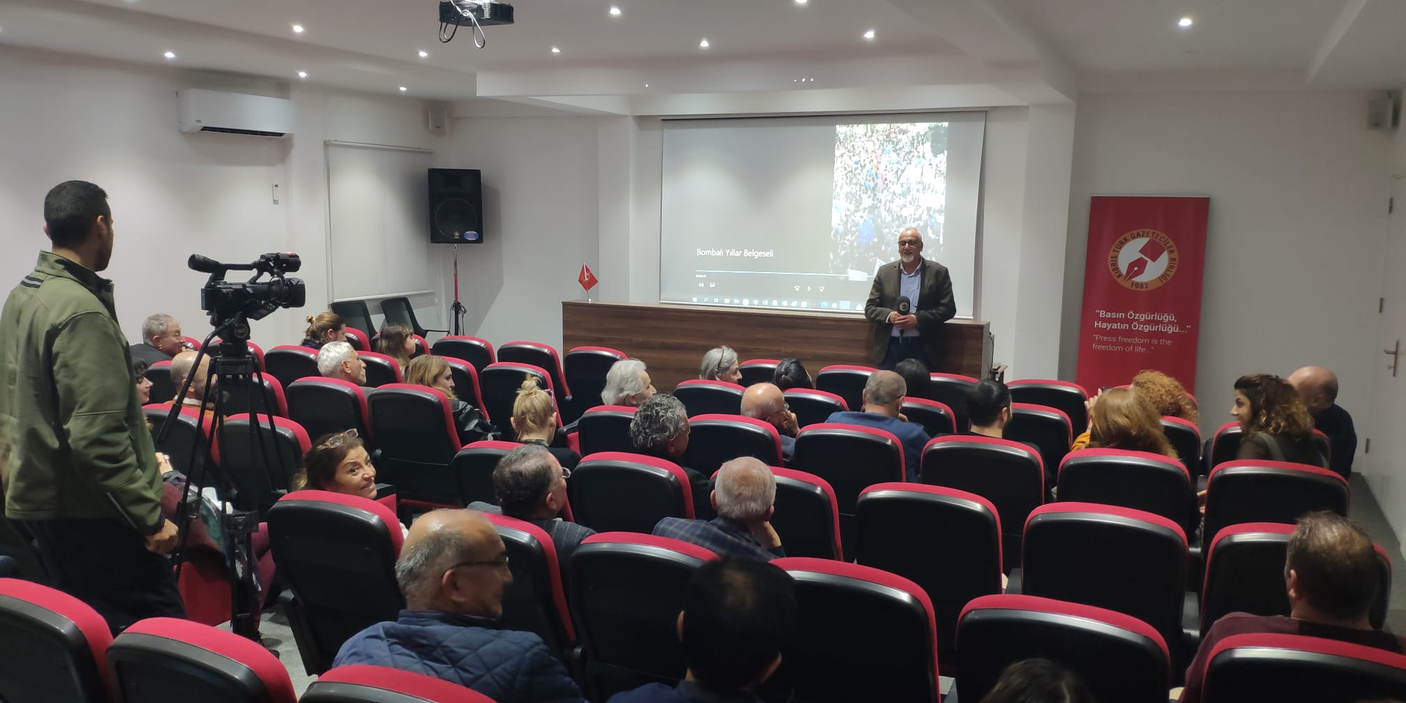Kıbrıs Türk toplumunu dehşete düşüren, ancak az bilinen ve unutulmaya yüz tutmuş şiddet olaylarını tarihe not düşen “Bombalı Yıllar” belgeselinin ikinci gösterimini, aralarında KTGB’nin konuğu olarak Ankara’dan gelen Gazeteciler Cemiyeti yöneticilerinin de bulunduğu çok sayıda kişi izledi.