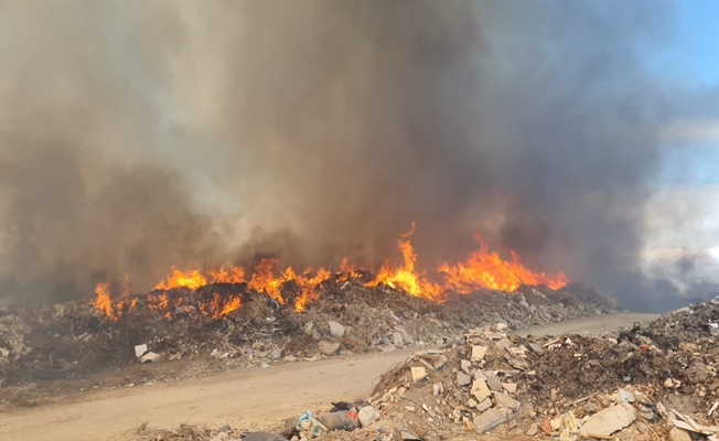 Çatalköy ve Esentepe Belediyelerine ait çöplük alanda bugün yangın çıktı.