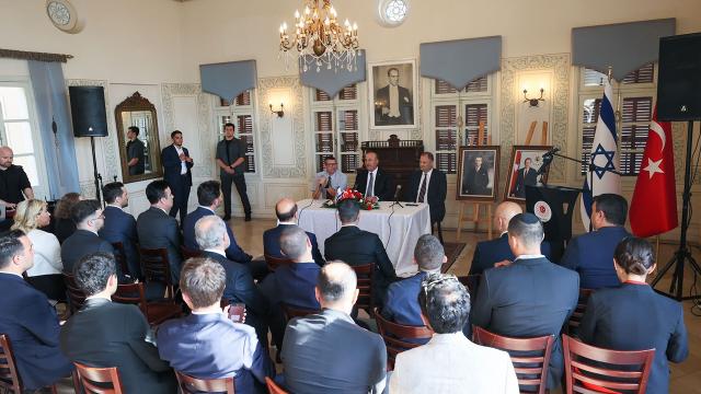 Çavuşoğlu, buradaki iş insanlara hitaben, “Türkiye-İsrail ilişkilerindeki iniş çıkışlara rağmen iş ilişkilerimiz her zaman güçlü kaldı. Bu, sizlerin emekleri ve Türkiye ile olan bağlarınız sayesinde böyle. İlişkilerimizde yeni bir sayfa ile iş topluluklarımız arasında daha fazla ortaklıkların oluşması için şartlar daha iyi durumda” diye konuştu.