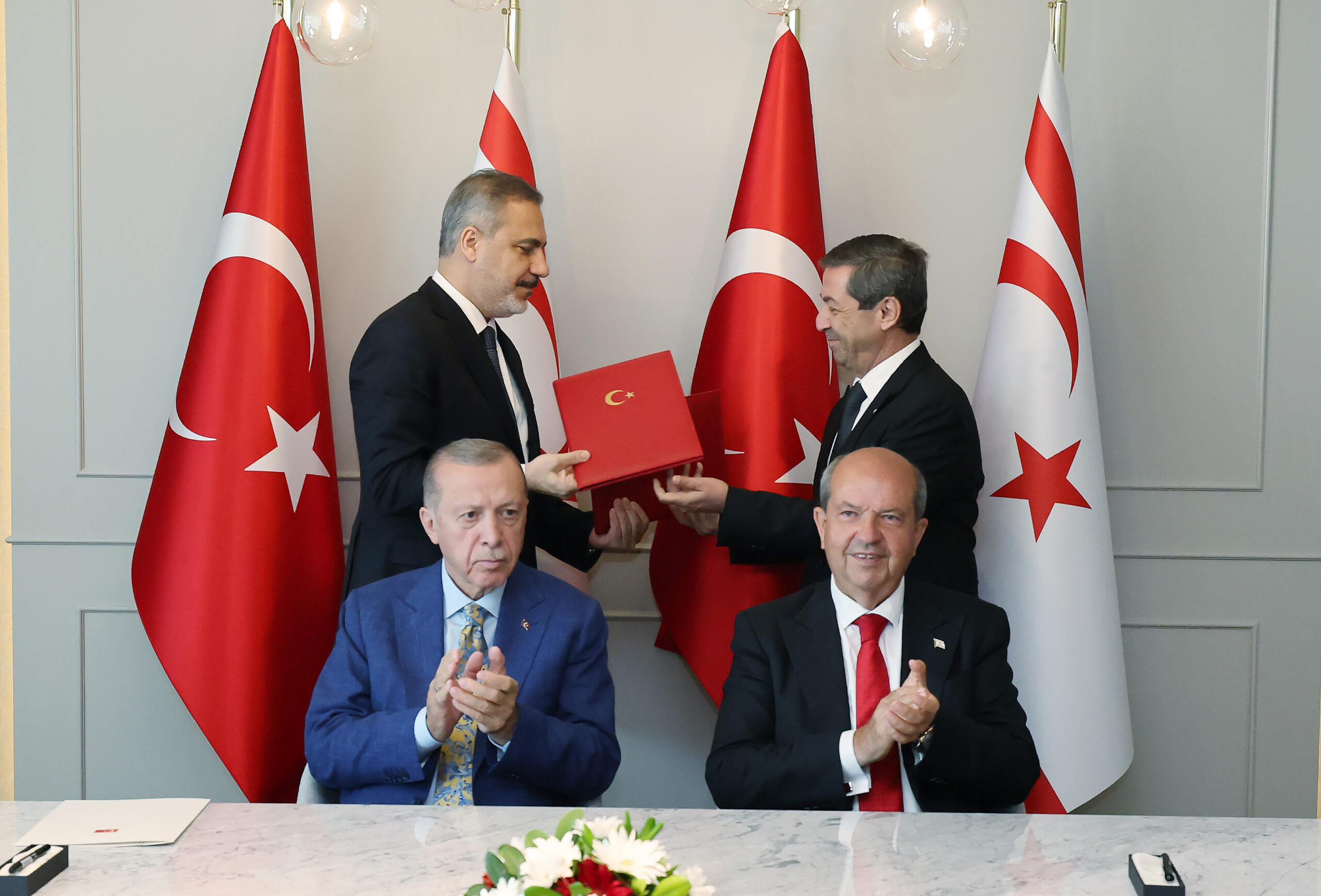 Cumhurbaşkanı Erdoğan ile KKTC Cumhurbaşkanı Tatar’ın, Lefkoşa’da bulunan Concorde Hotel’deki baş başa görüşmesi sonrasında iki lider, Kuzey Kıbrıs Türk Cumhuriyeti Vatandaşlarına Konsolosluk Hizmeti Sunulması Hakkında Anlaşma ile Kuzey Kıbrıs Türk Cumhuriyeti Düzensiz Göçle Mücadele Merkezi Tesisi Sürecinde Türkiye Cumhuriyeti’nce Verilecek Desteğe İlişkin Mutabakat Zaptı’nı imzaladı.
