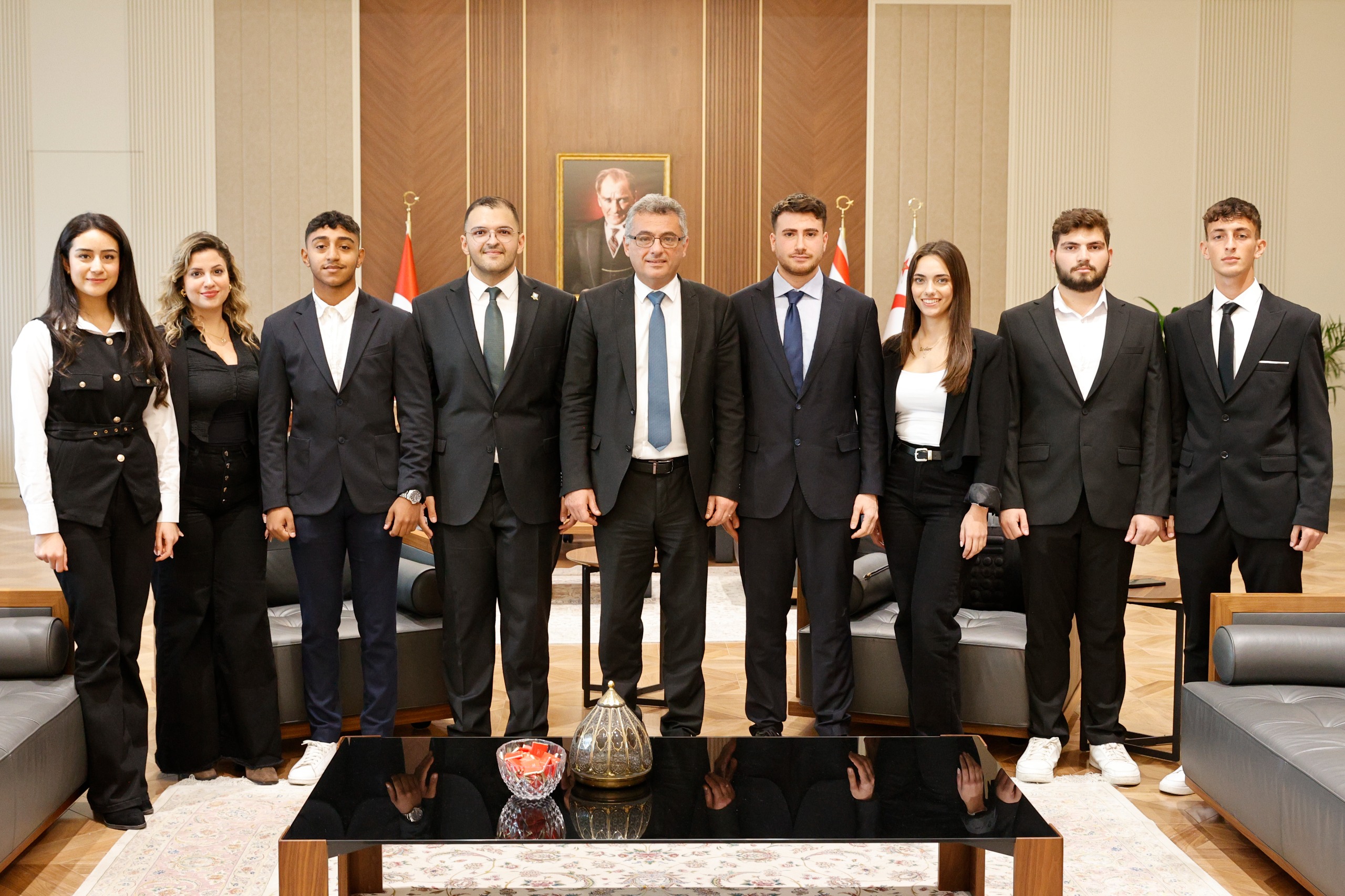 Cumhurbaşkanı Tufan Erhürman, Hüseyin Aran sözcülüğündeki gençlik heyetini kabul ederek görüştü.