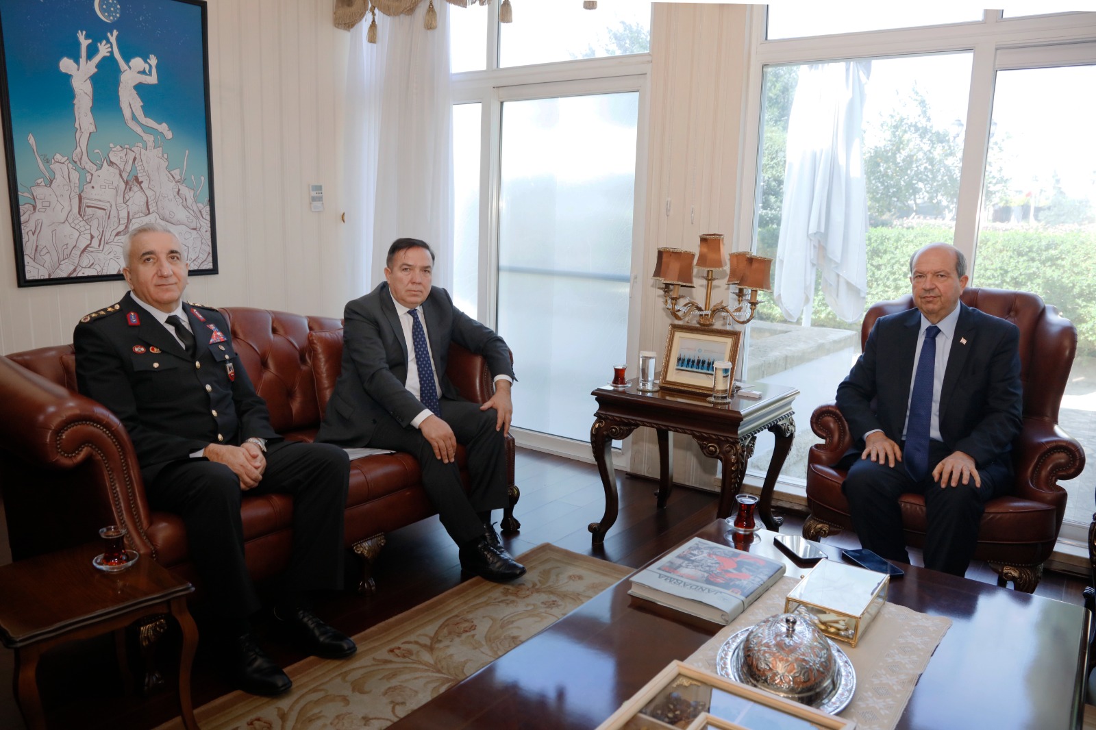 Cumhurbaşkanlığından yapılan açıklamaya göre, kabulde, Jandarma Albay Orhan Sırma, 6 Şubat depreminde jandarmanın faaliyetlerini konu alan ve Cumhurbaşkanı Ersin Tatar’ın deprem bölgelerine gerçekleştirdiği ziyaretlerle ilgili fotoğrafların da bulunduğu “Asrın Felaketinde Jandarma” isimli kitabı takdim etti.