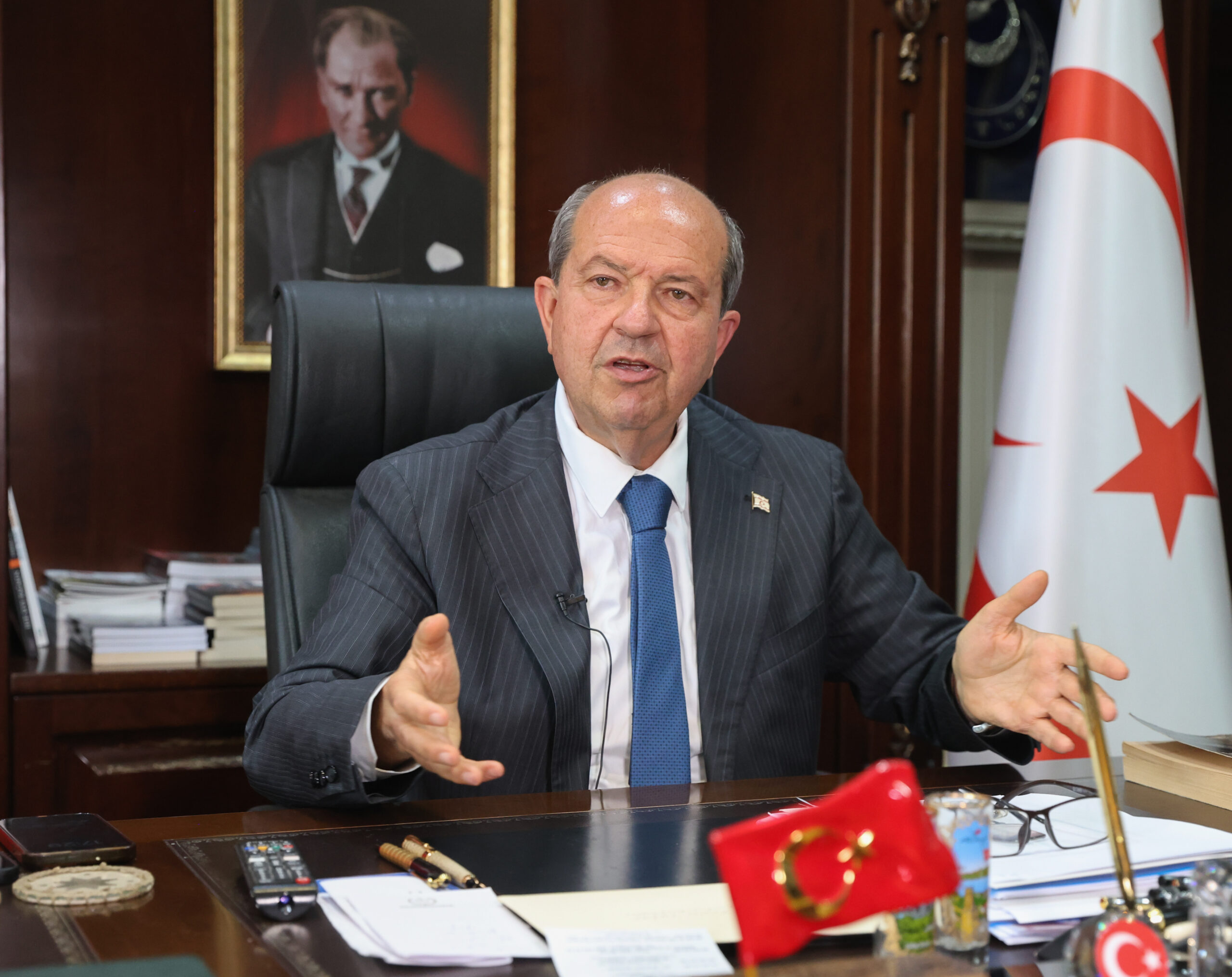 Tatar, KKTC Cumhurbaşkanlığı Ofisinde gündemdeki konular ile ilgili AA muhabirine değerlendirmelerde bulundu.