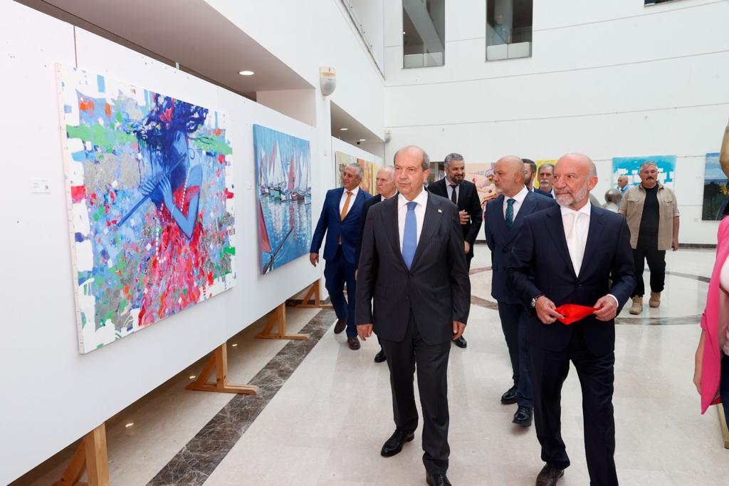 Cumhurbaşkanı Ersin Tatar, Kıbrıs Modern Sanat Müzesi’nin 54 Azerbaycan sanatçısının eserlerinden oluşan Azerbaycan Bağımsızlık Günü Sergisi’nin Yakın Doğu Üniversitesi Hastanesi Sergi Salonu’nda gerçekleşen açılışına katıldı.