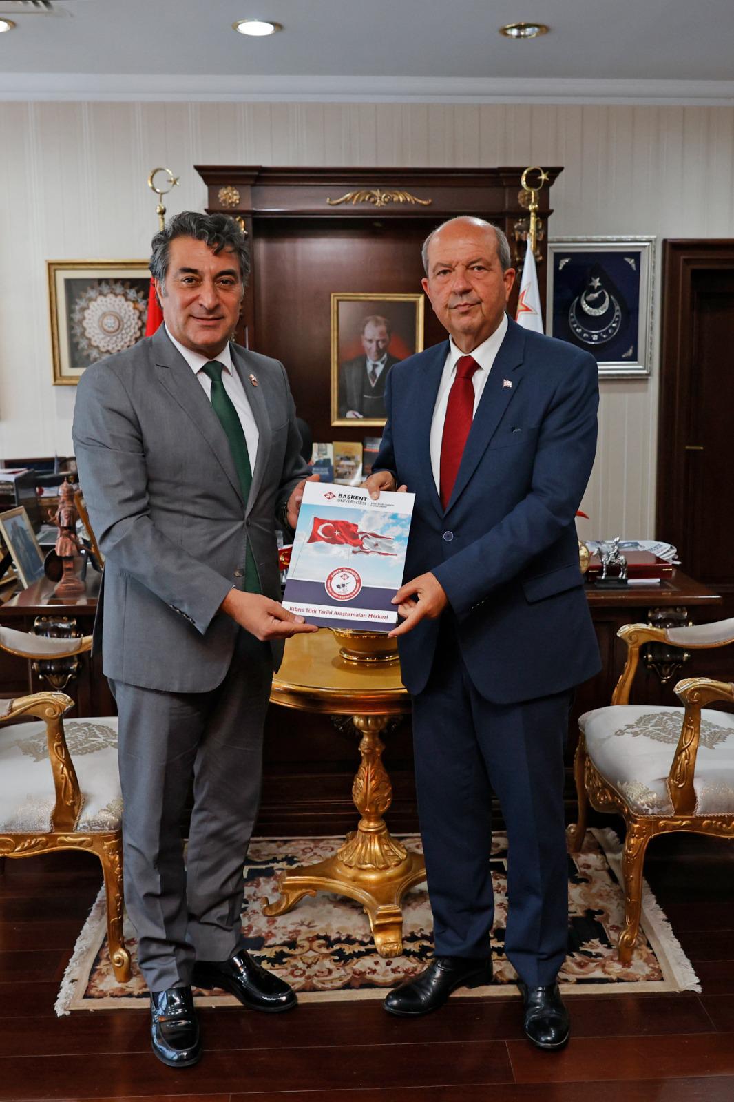 Cumhurbaşkanı Ersin Tatar, Başkent Üniversitesi Kıbrıs Türk Tarihi Araştırma Merkezi Kurucu Müdürü Doç. Dr. Mehmet Balyemez’i kabul etti.