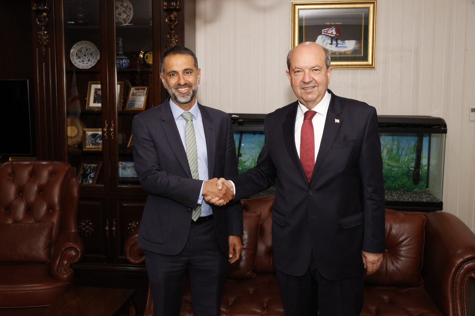 Cumhurbaşkanı Ersin Tatar, İngiliz Yüksek Komiseri Irfan Siddiq’i kabul etti.