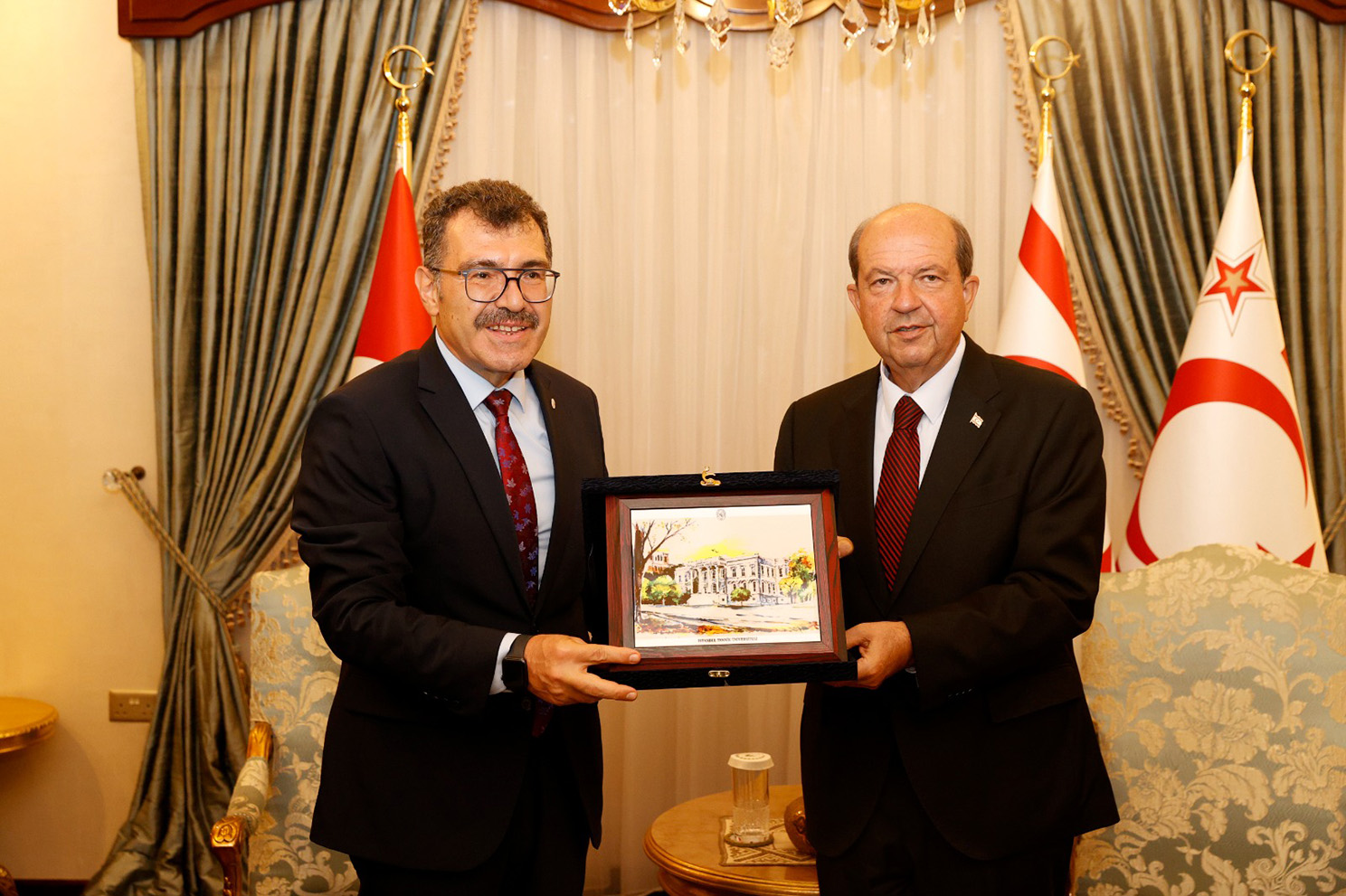 Cumhurbaşkanı Ersin Tatar, İstanbul Teknik Üniversitesi’nin yeni rektörü Prof. Dr. Hasan Mandal ve İTÜ KKTC Kampüsü Genel Sekreteri Dursun Koç’u kabul etti.