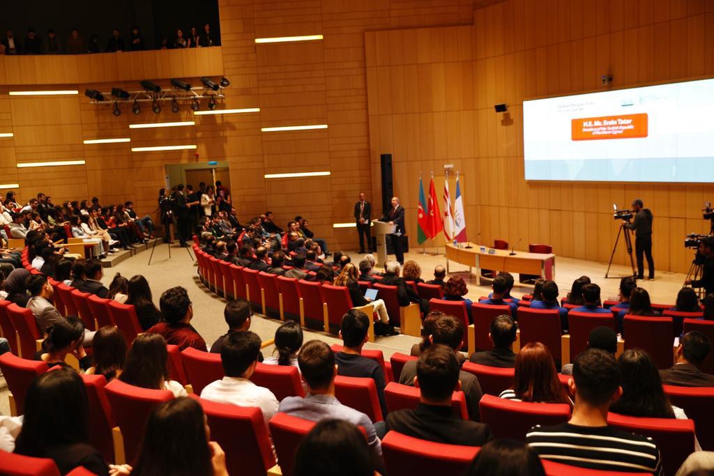 Cumhurbaşkanı Ersin Tatar, Bakü’deki Ada Üniversitesi’nde konferans verdi. Konferans, Kıbrıs Türk halkının mücadelesini anlatan KKTC Cumhurbaşkanlığı’nın video gösterimi ile başladı.