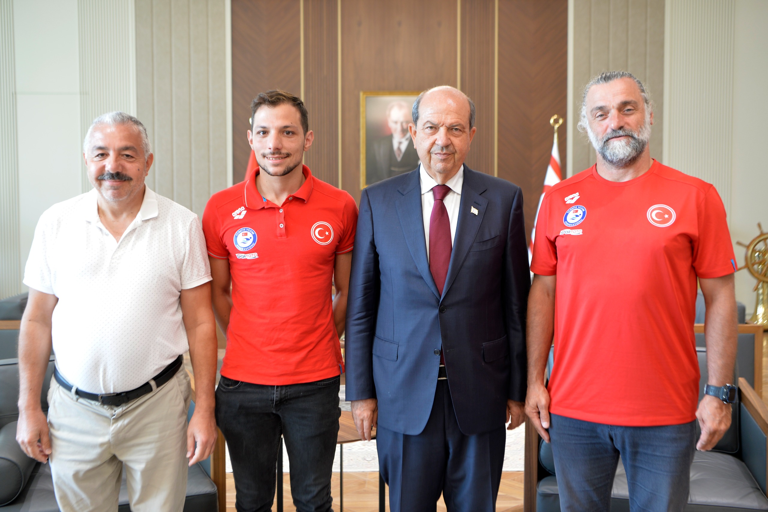 Cumhurbaşkanı Ersin Tatar, Kıbrıslı Türk milli yüzücü Doğukan Ulaç’ı makamında kabul etti.