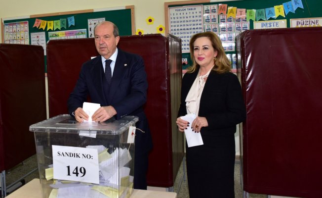 Cumhurbaşkanı Ersin Tatar eşi Sibel Tatar ile birlikte Şehit Tuncer İlkokulu’nda 149 numaralı sandıkta oyunu kullandı.