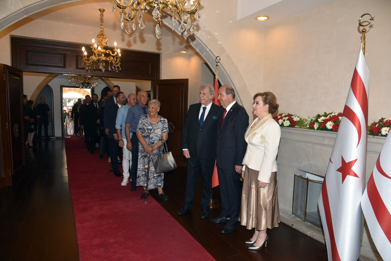 Halka açık düzenlenen bayramlaşmaya, Cumhuriyet Meclisi Başkanı Zorlu Töre, Başbakan Ünal Üstel, Yüksek Mahkeme Başkanı Bertan Özerdağ, Türkiye Cumhuriyeti Lefkoşa Büyükelçisi Metin Feyzioğlu ve eşi, Kıbrıs Türk Barış Kuvvetleri Komutanı Tümgeneral Sebahattin Kılınç, Güvenlik Kuvvetleri Komutanı Tümgeneral Osman Aytaç, bazı bakan ve milletvekilleri, askeri yetkililer, bürokratlar ve halk katıldı.