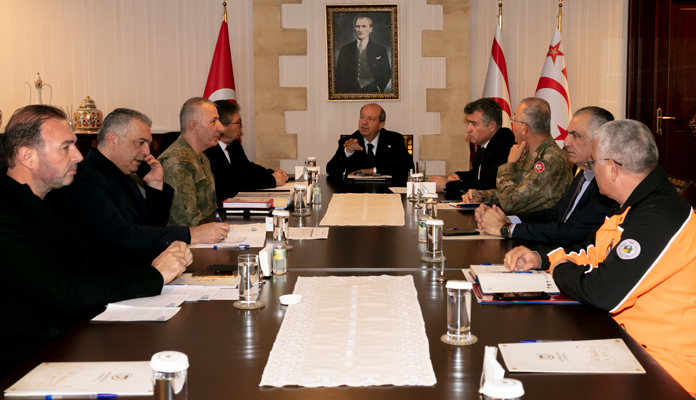Cumhurbaşkanı Ersin Tatar’ın başkanlığındaki depremle ilgili oluşturulan kriz masası çalışmalarını sürdürüyor.