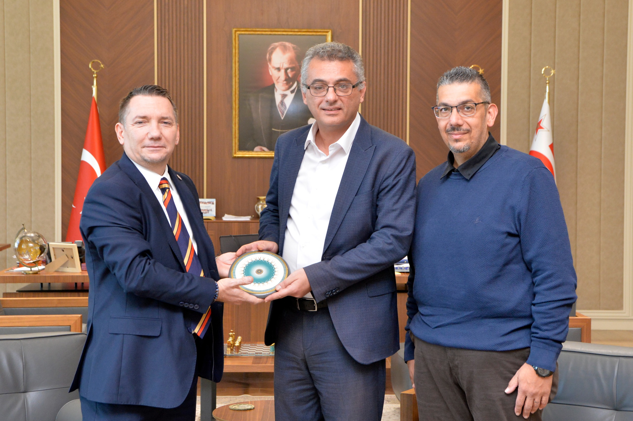 Görüşmede ayrıca, ziyaret anısına Cumhurbaşkanı Erhürman’a hediye takdim edildi.