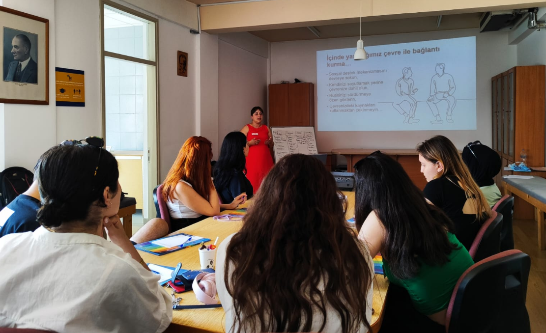 DAÜ’den yapılan açıklamaya göre, Uzman Psikolog Özlem Güler Erginsoylu ve Sosyal Hizmet Uzmanı Halide Sarp tarafından yapılan grup çalışması kapsamında stres kaynakları, belirtileri, duyguları anlamak ve stres ile etkin baş etme konularında psikoeğitim verildi.