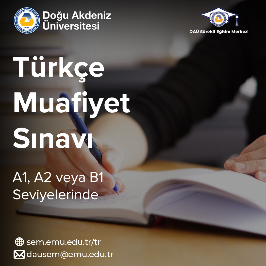 Doğu Akdeniz Üniversitesi Sürekli Eğitim Merkezi (DAÜ-SEM), KKTC’de eğitim görecek yabancı uyruklu ilköğretim ve ortaöğretim öğrencilerine Türkçe muafiyet sınavı düzenleyecek.
