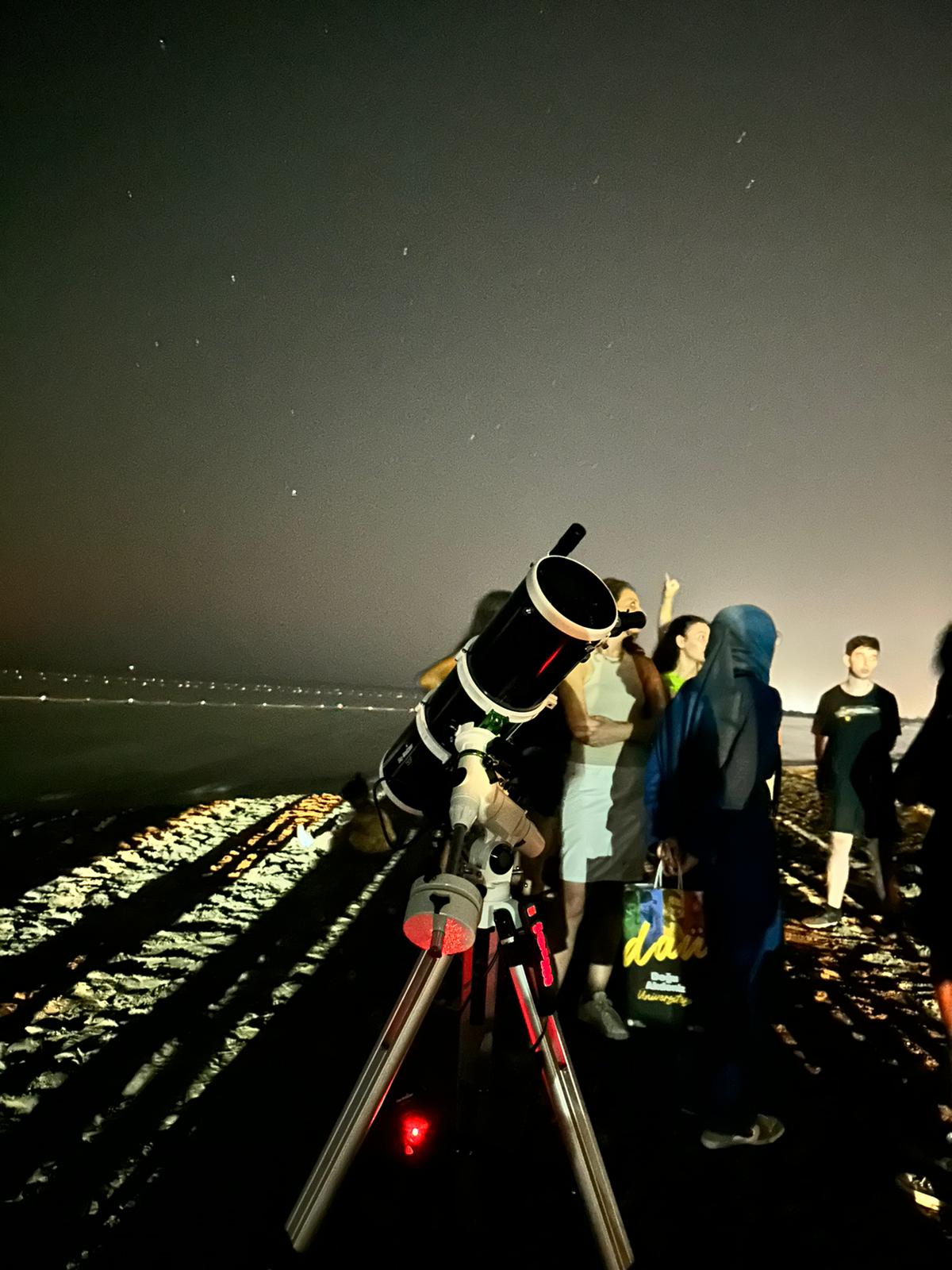 Atölyede, gece DAÜ Deniz Tesisleri’nde teleskopla gökyüzü gözlemlendi.