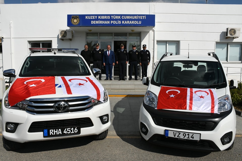 Değirmenlik-Akıncılar Belediyesi tarafından satın alınan iki yeni araç, Demirhan Polis Karakolunda kullanılmak üzere bugün Değirmenlik-Akıncılar Belediyesi Başkanı Ali Karavezirler tarafından Lefkoşa Polis Müdürü Gökay Karagil’e teslim edildi.