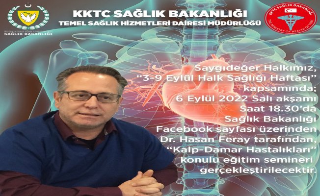 Bu çerçevede Dr. Hasan Feray, KKTC Sağlık Bakanlığı Facebook sayfası üzerinden çevrimiçi “Kalp-Damar Hastalıkları” eğitimi verecek.