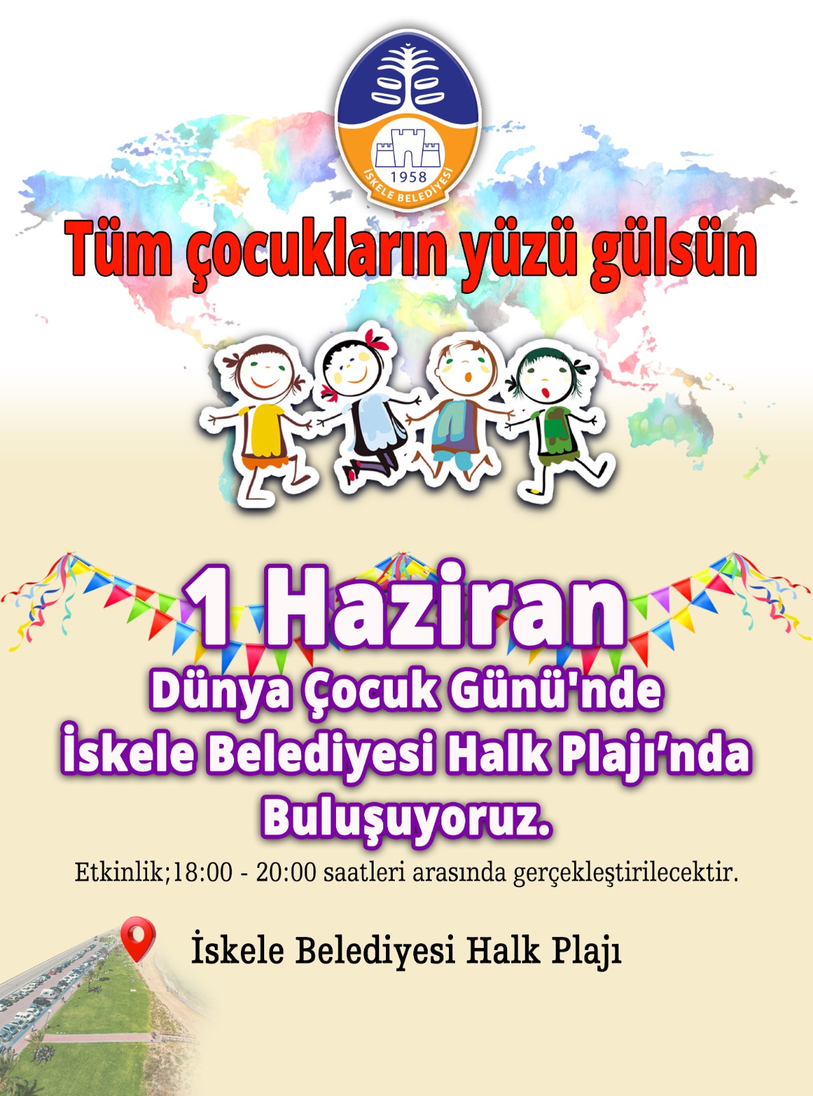 İskele Belediyesi, 1 Haziran Dünya Çocuk Günü’nde “tüm çocukların yüzü gülsün” temasıyla, çocukları İskele Belediyesi Halk Plajı’nda ağırlayacak.