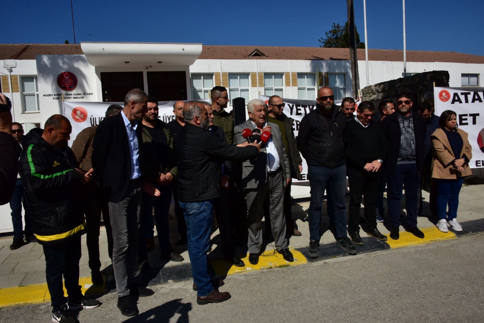 Başbakan Ünal Üstel’e, Ekonomi ve Enerji Bakanı Olgun Amcaoğlu’na ve komite üyeleri Resmiye Canaltay, Hüseyin Çavuş, Hasan Küçük ile Kıb*-Tek Genel Müdür Vekili Dalman Aydın’a yönelik eleştirilerin yer aldığı pankartların açıldığı eylemde, Kıbrıs Türk İşçi Sendikaları Federasyonu (Türk-Sen) Başkanı Aslan Bıçaklı ile El-Sen Başkanı Çağlayan Cesurer birer konuşma yaptı.