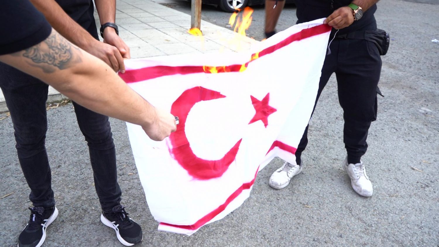 Gençlerin yaptığı yürüyüşün Ledra Palace kapısında, milli marşın okunmasıyla sona erdiği belirtilirken, “sözde Yunan-Türk dostluğu ve sahte devletin ilanına sembolik yanıt olarak”, KKTC bayrağının ateşe verildiği ifade edildi.