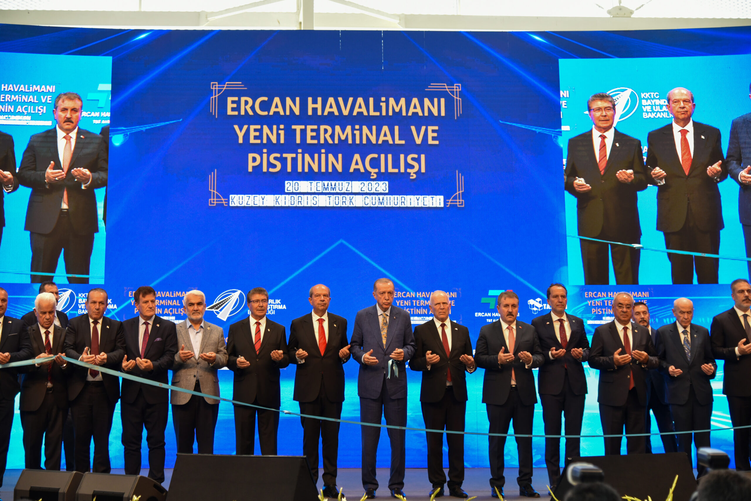 Ercan Havalimanı Yeni Terminal ve Pisti açılış töreni, TC Cumhurbaşkanı Recep Tayyip Erdoğan, KKTC Cumhurbaşkanı Ersin Tatar, Meclis Baskani Zorlu Töre, Başbakan Ünal, Üstel, bakanlar ve diğer yetkililerin katılımıyla yapıldı.