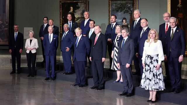 Yemeğe gelen konukları karşılayan İspanya Başbakanı Sanchez ve eşi Fernandez, zirveye katılan devlet ve hükûmet başkanları, uluslararası kuruluşların temsilcileri ve eşleriyle fotoğraf çektirerek müzeyi gezdi ve ardından yemeğe geçildi.
