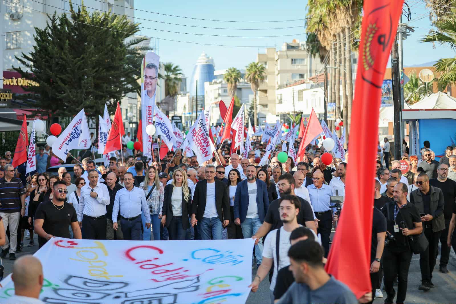 Cumhuriyetçi Türk Partisi (CTP) Genel Başkanı ve Cumhurbaşkanı adayı Tufan Erhüman için bugün Lefkoşa Dereboyu’nda yürüyüş düzenlendi.