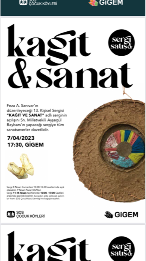 Sergi ayrıca 10-20 Nisan tarihlerinde 10.00-17.00 saatleri arasında ziyarete açık olacak ve elde edilecek gelirin bir kısmı SOS Çocukköyü Derneği’ne bağışlanacak.