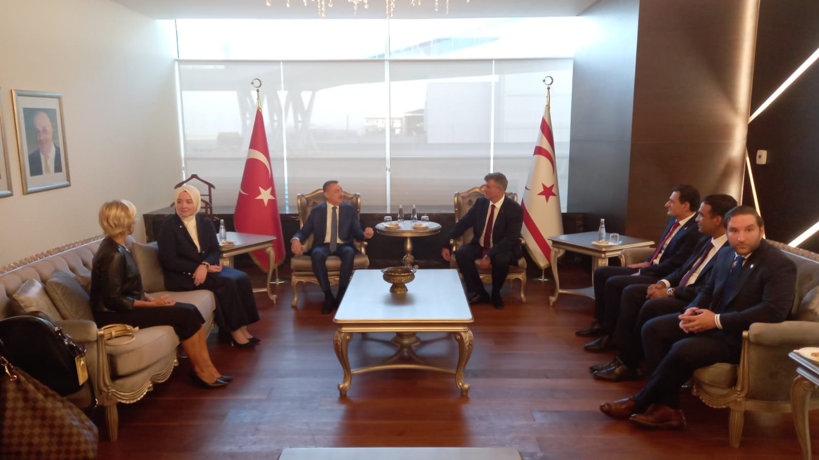 Heyeti Ercan Havalimanında, Türkiye’nin Lefkoşa Büyükelçisi Metin Feyzioğlu, İçişleri Bakanı Dursun Oğuz, Çalışma Ve Sosyal Güvenlik Bakanı Sadık Gardiyanoğlu karşıladı.