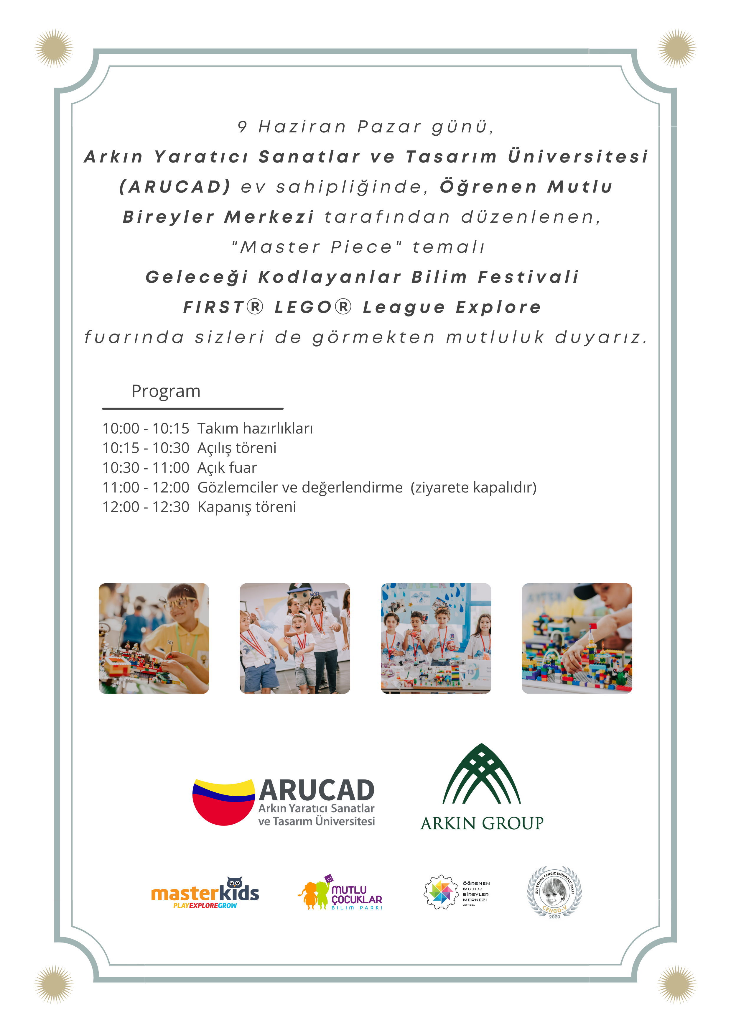 Öğrenen Mutlu Bireyler Merkezi, MasterKids ve Süleyman Cengiz Eminoğlu Vakfı tarafından organize edilen “Geleceği Kodlayan Minikler Bilim Festivali” Arkın Group ve ARUCAD sponsorluğunda gerçekleştirilecek.