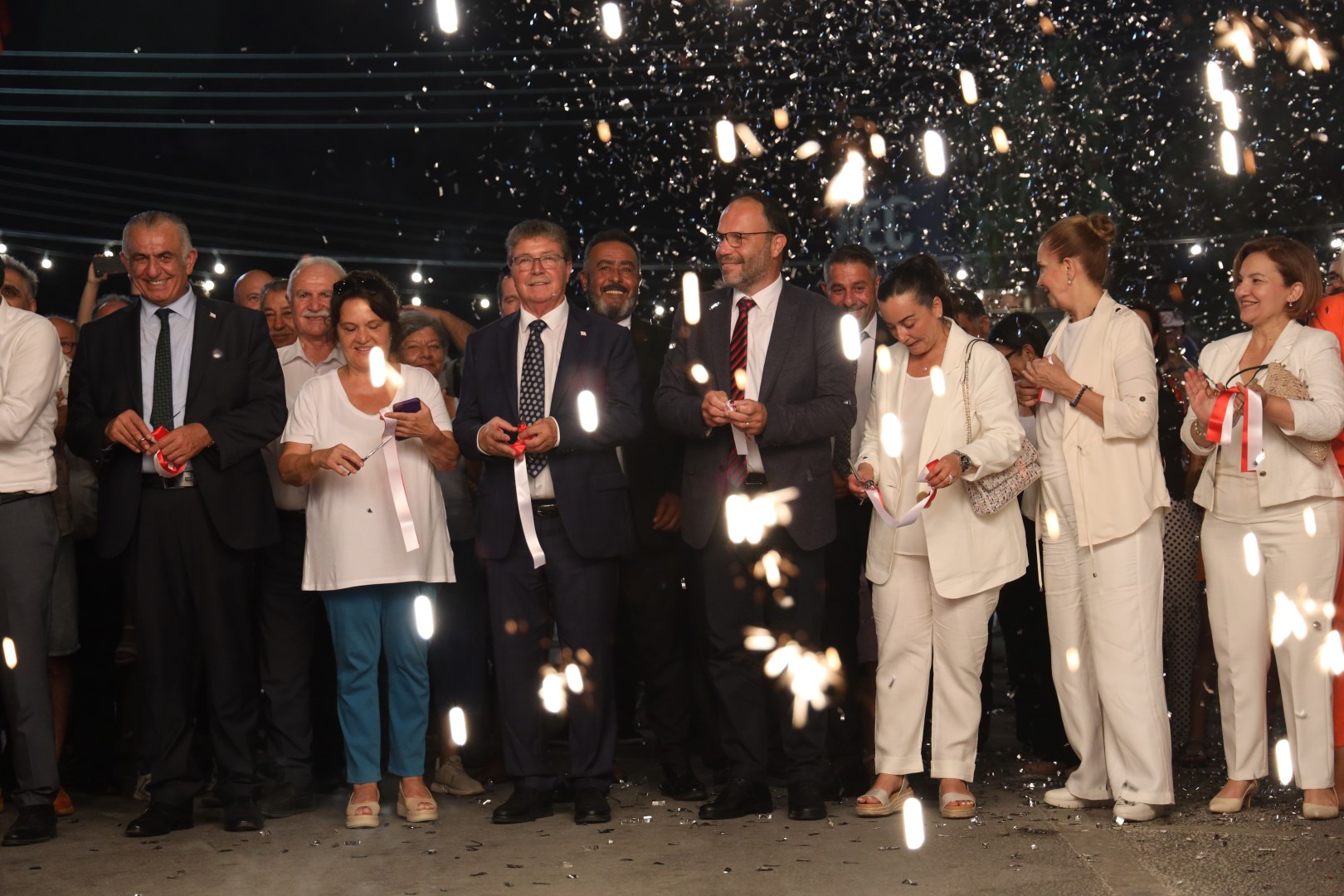 Konuşmaların ardından açılış kurdelesi, protokolün de katılımıyla havai fişek gösterileri eşliğinde kesildi ve İskele Belediye Gazinosu’nda bulunan köy kadın kursları sergisi açıldı.