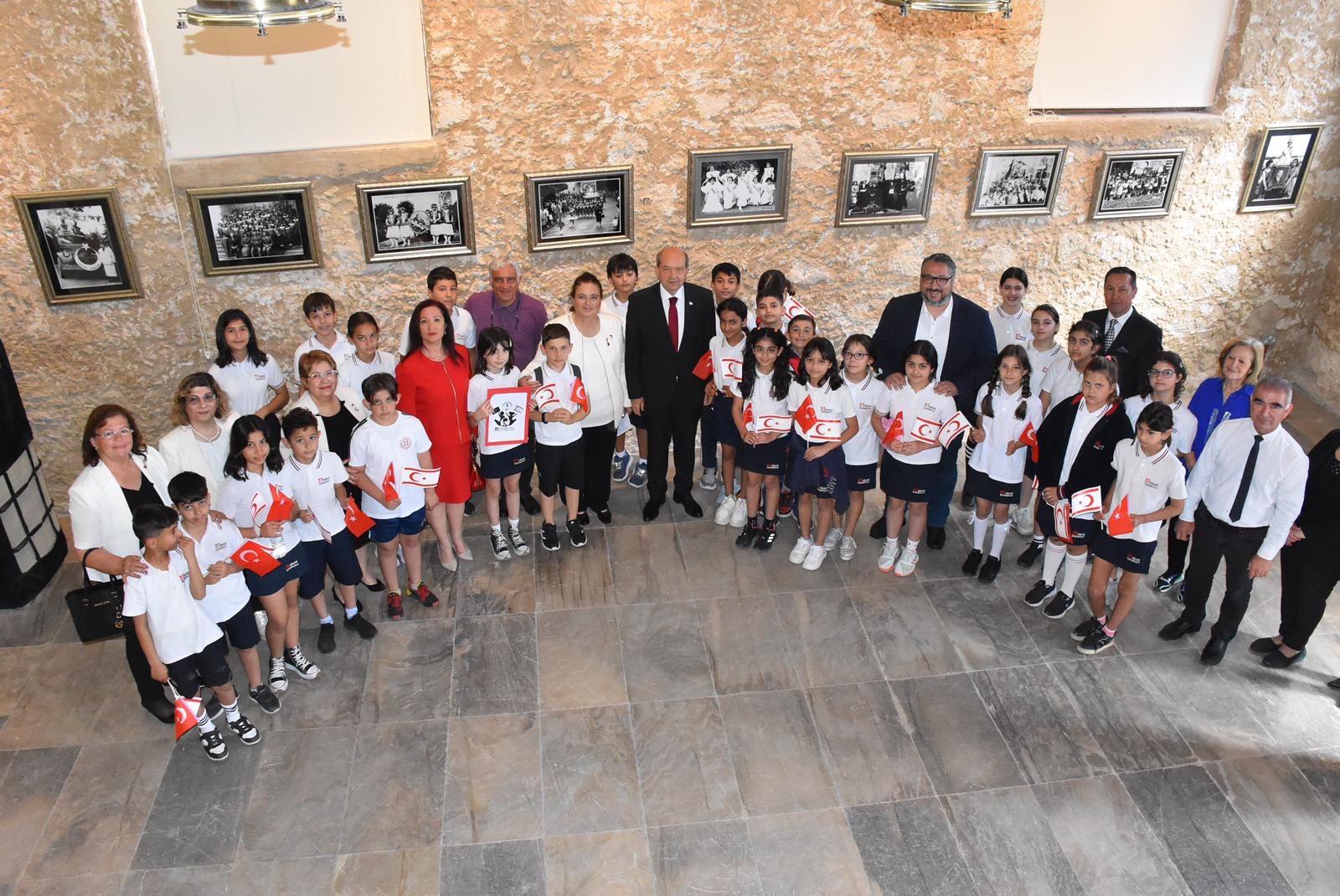 Sözlerine 23 Nisan Ulusal Egemenlik ve Çocuk Bayramı münasebeti ile gerçekleştirilen organizasyonda bulunmaktan dolayı büyük mutluluk duyduğunu vurgulayarak başlayan Cumhurbaşkanı Ersin Tatar, organizasyonun mimarı olan Eriş Ülger ve tüm katkı koyanlara teşekkür etti. Ulu Önder Mustafa Kemal Atatürk’ün 23 Nisan 1920’de, TBMM’nin kuruluş gününde, bu özel günü tüm dünya çocuklarına armağan ettiğini hatırlatan Tatar; küllerinden doğan Türkiye Cumhuriyeti’nin büyüme ve kalkınma dönemi fotoğraflarına ve bu heyecanın çocuklara yansımasına şahitlik ettiklerinin altını çizdi. Bu vesile Ulu Önder Atatürk ve tüm dava arkadaşlarına rahmet ve saygılarını sunan Tatar, açılışta bulunan çocuklara ise Atatürk’ün yolunda gitmenin, onun ilke ve inkılaplarını takip etmenin önemini vurgulayan tavsiyelerde bulundu.