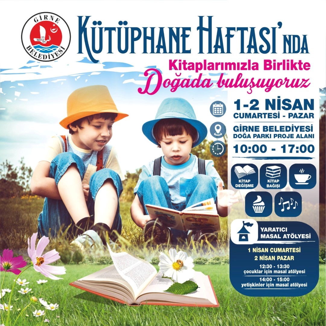 Girne Belediyesi Kütüphane Haftası kapsamında, okuma etkinliği düzenleyecek. Etkinlik, 1-2 Nisan tarihlerinde Doğa Parkı Proje Alanı’nda yer alacak.