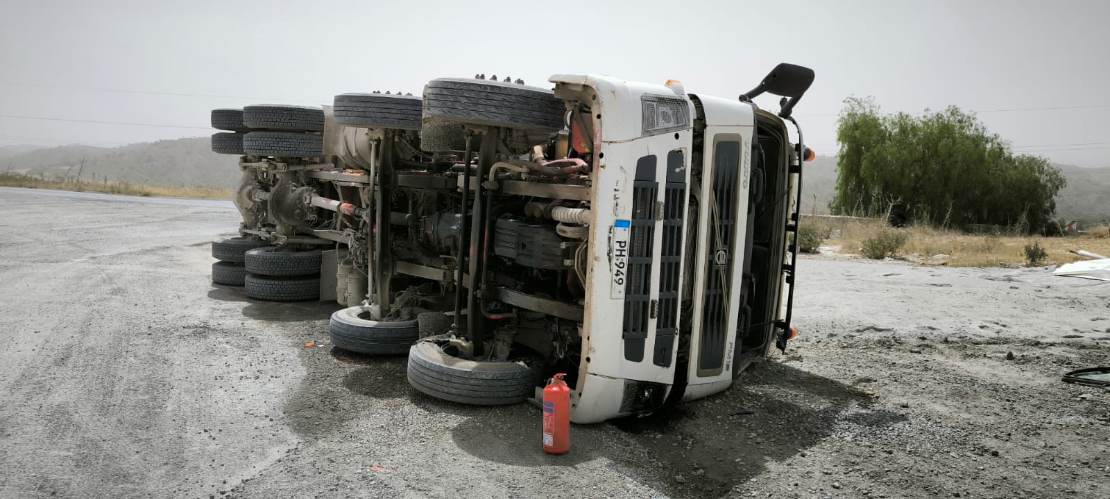 Girne – Değirmenlik dağ yolunda kum yüklü kamyon devrildi, araç sürücüsü yaralandı.